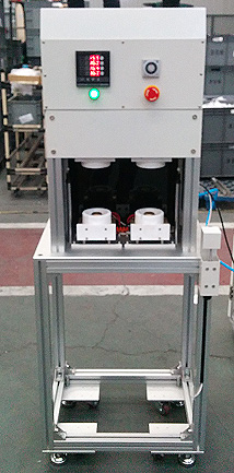 豐田汽車空調(diào)通風(fēng)管道封口設(shè)備,利用加熱塊去除纖維材料周邊毛刺同事達(dá)到封口目的,兩工同時作業(yè),提高效率。